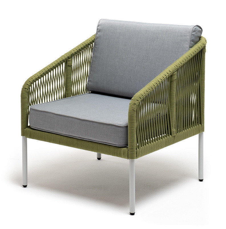 "Канны" кресло плетеное из роупа, каркас алюминий светло-серый (RAL7035) шагрень, роуп салатовый меланж