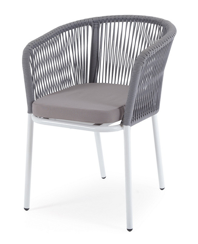 "Марсель" стул плетеный из роупа, каркас алюминий светло-серый (RAL7035) шагрень, роуп светло-серый круглый,