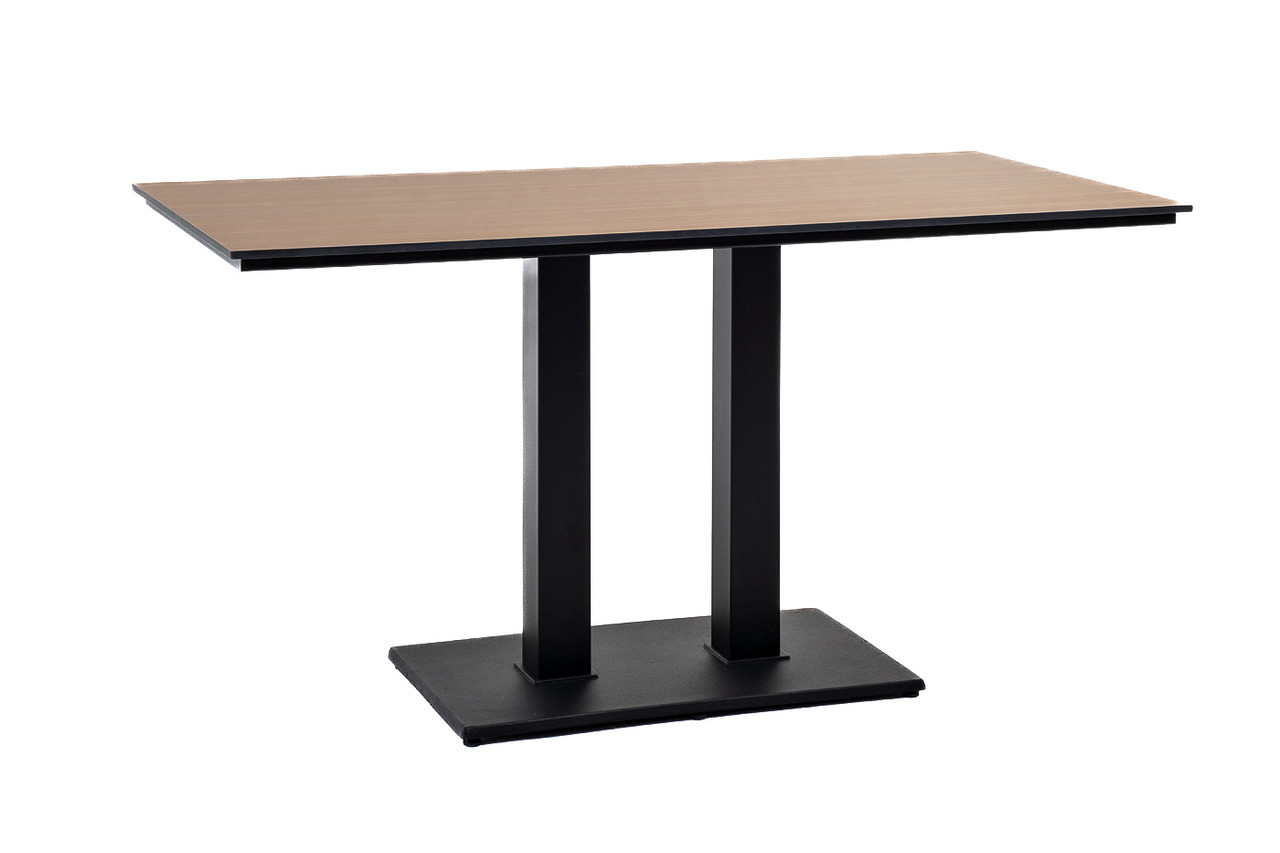 "Каффе" обеденный стол из HPL 140х70см, цвет "дуб", подстолье двойное черное чугун